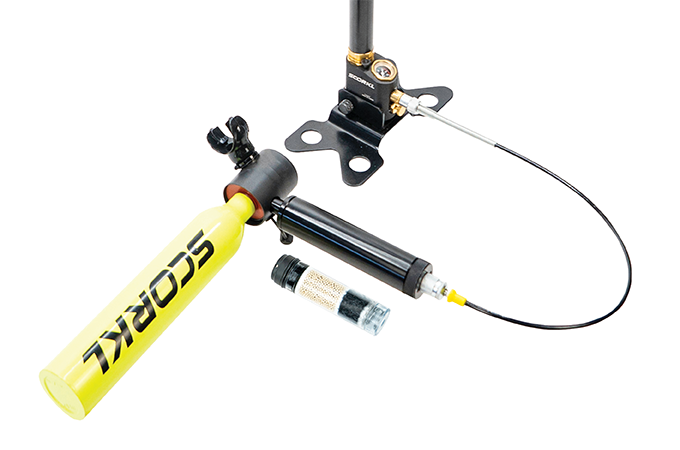 Fill your SCORKL to 200 bar (3,000psi) with our specially designed high-pressure hand pump.