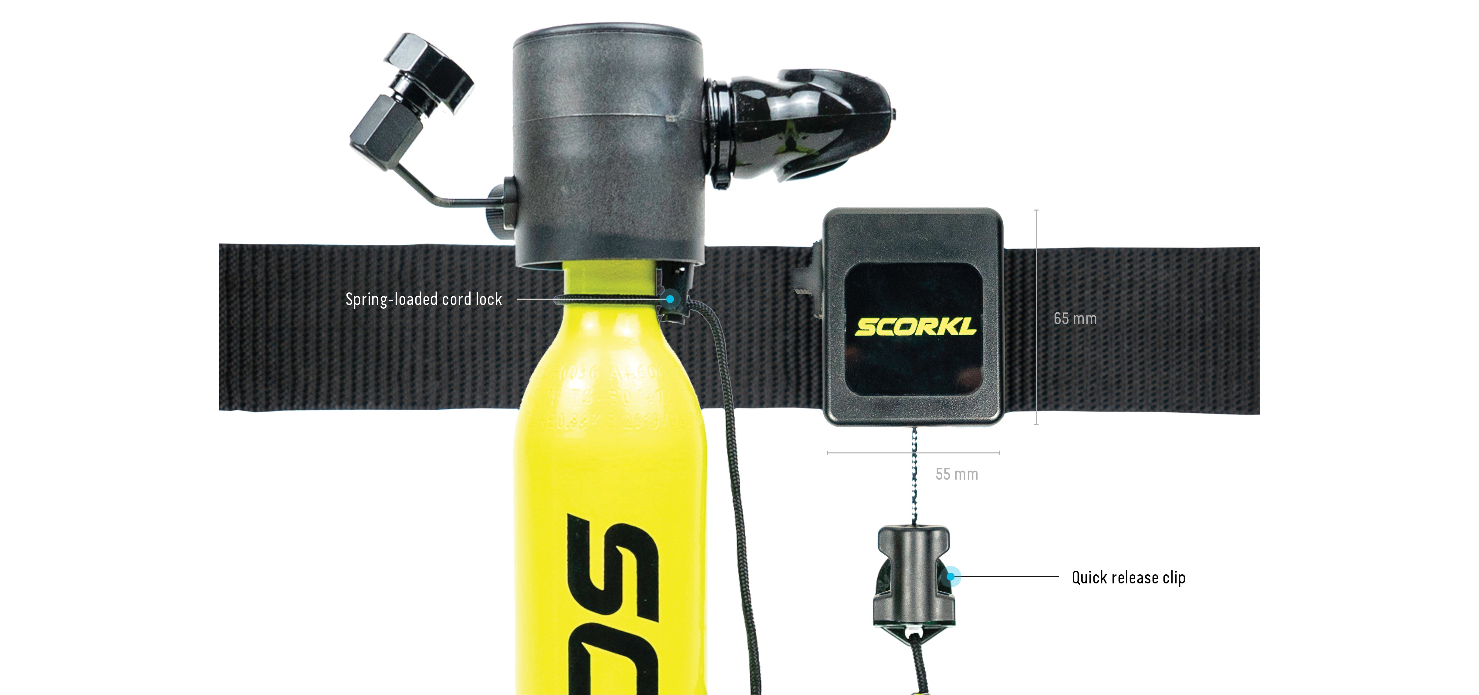 Designed to keep your SCORKL close. Strap it to your dive belt. And always have extra air on hand.