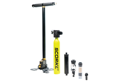 - Includes SCORKL cylinder, regulator, high-pressure hand pump, air filter, SCUBA tank refill adapter, compressor refill adapter, protective dust caps, safety instructions and user guide.