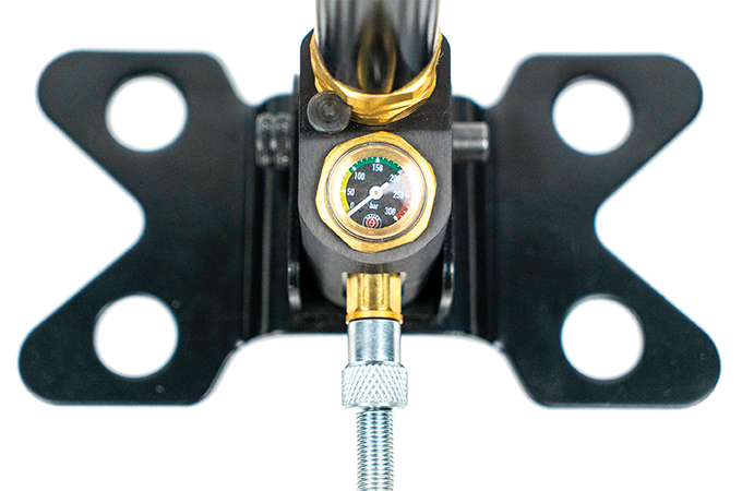 Get a pump. And pump it up. Our high-pressure hand pump that can pump to 200 bar (3,000psi) with a two stage air filtration system.