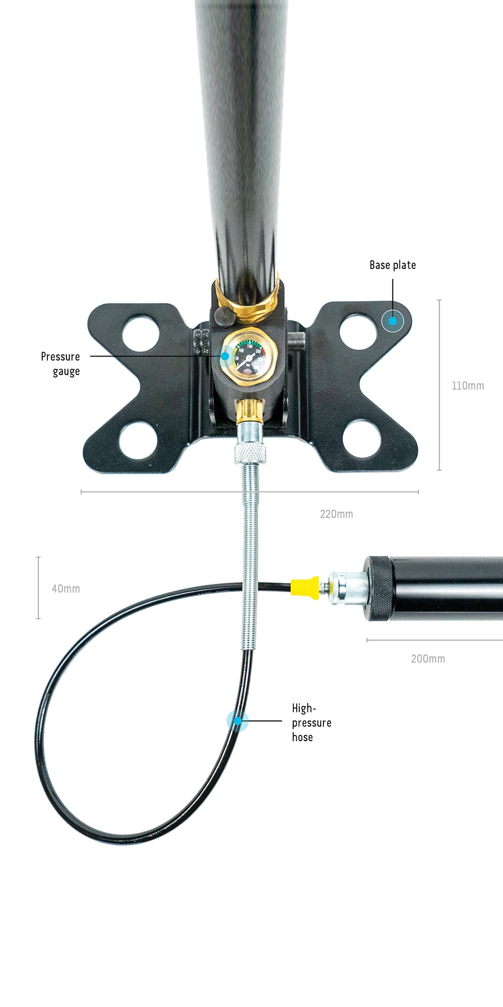 Pump your SCORKL using your high-pressure hand pump up to 200 bar