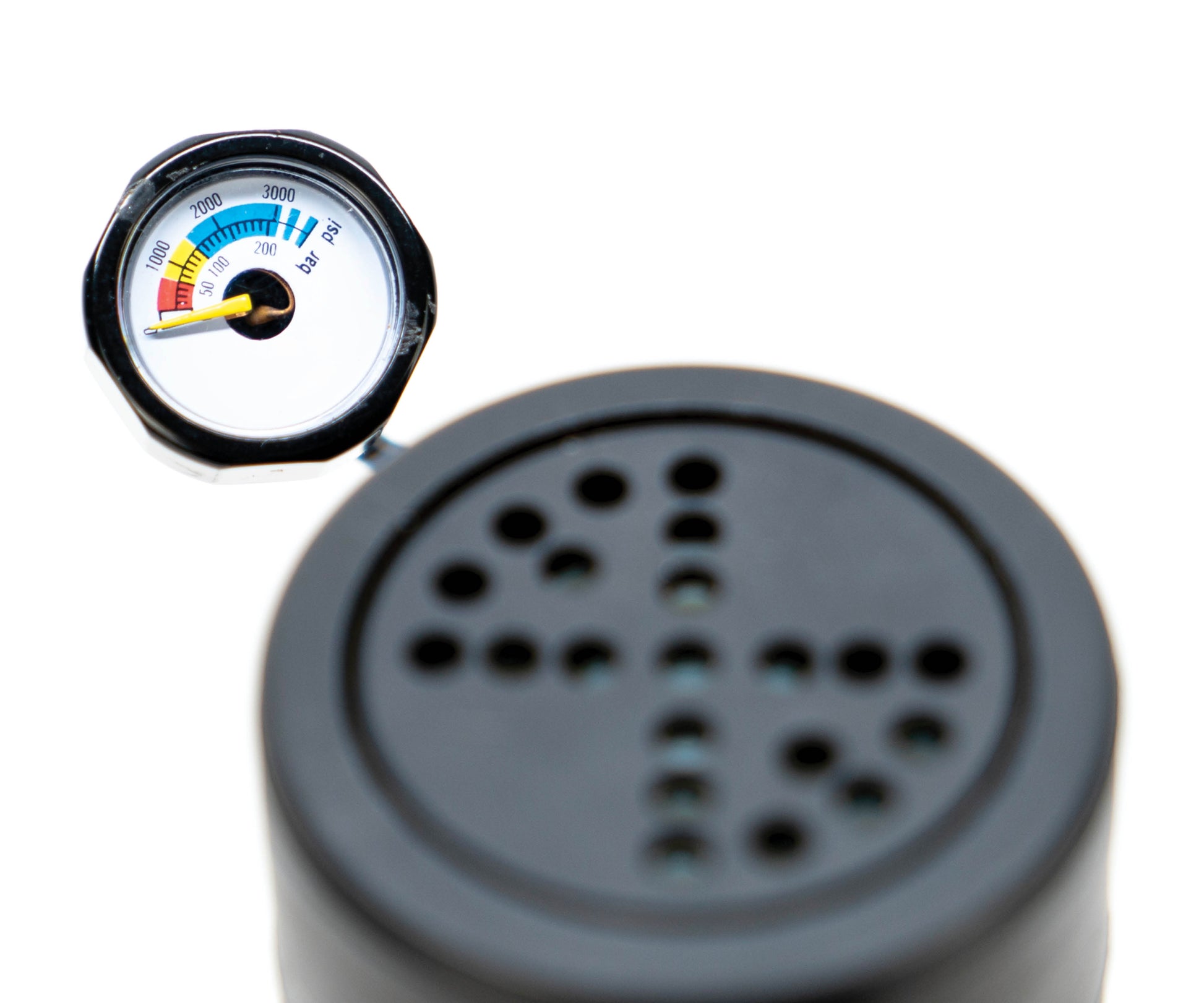 Connect to a high pressure SCUBA air compressor to refill your SCORKL effortlessly. Free with every SCORKL.