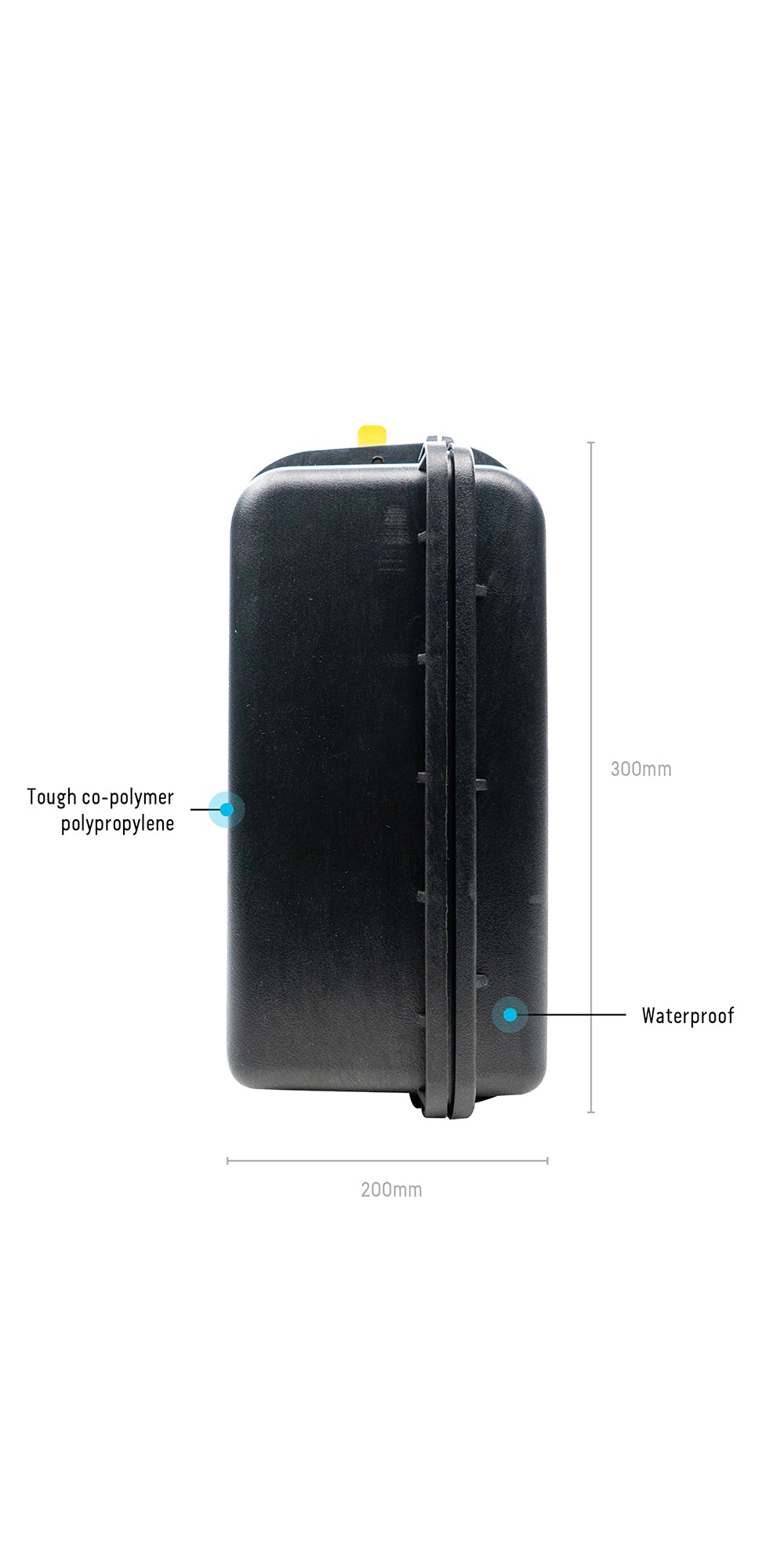 2x heavy-duty polyurethane wheels with stainless steel bearings. To take the pressure off during land, sea or air travel.