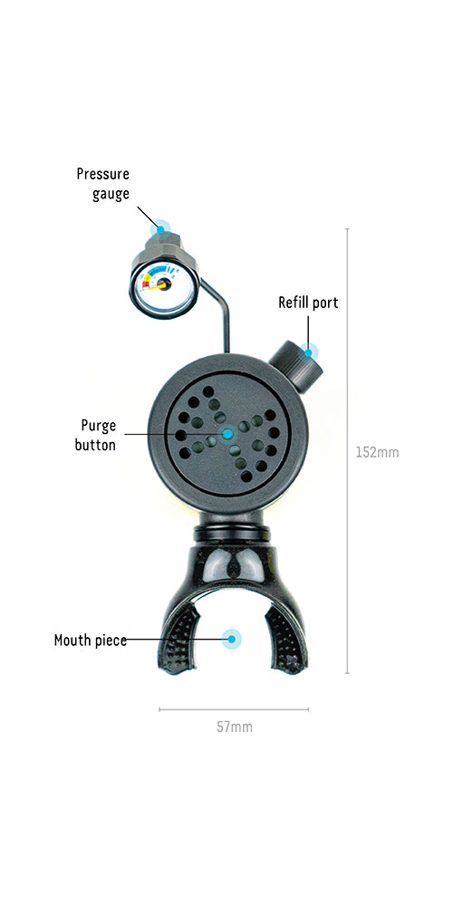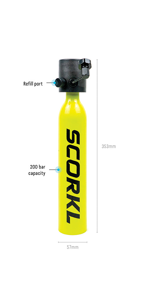 • Refillable by SCUBA tank, dive compressor, SCORKL hand pump (not included)