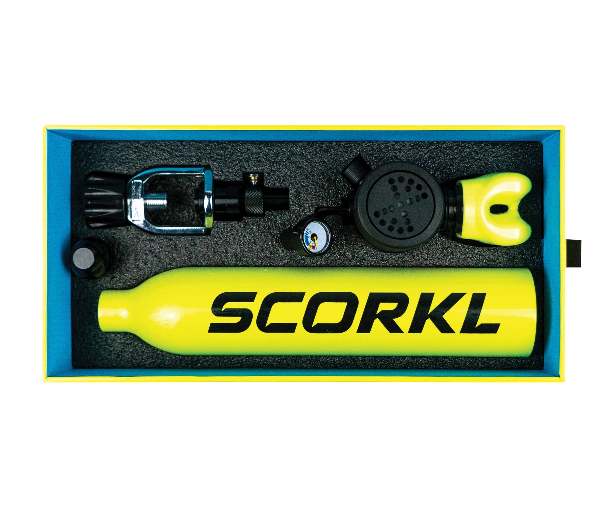 SCORKL is a revolutionary mini scuba tank that enables anyone to dive with total freedom. Portable, lightweight and refillable, the SCORKL requires no certification and no heavy equipment.