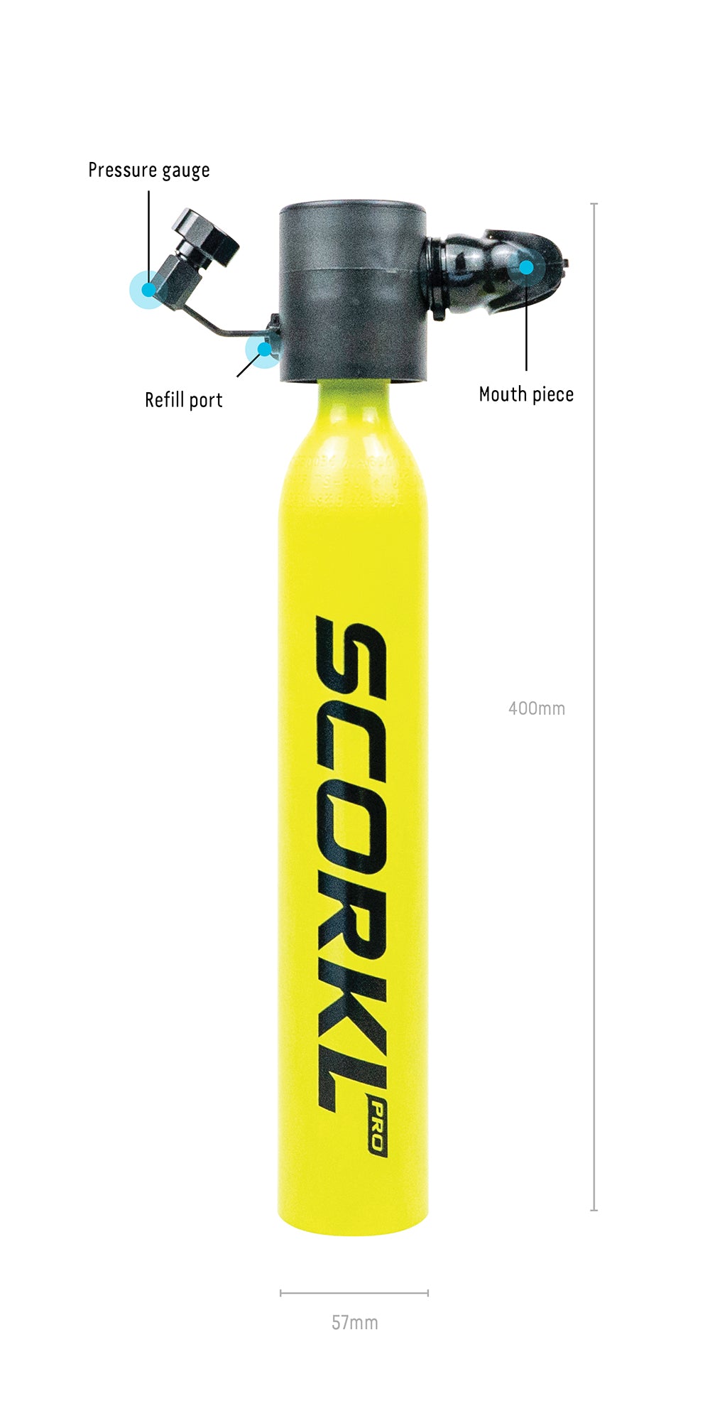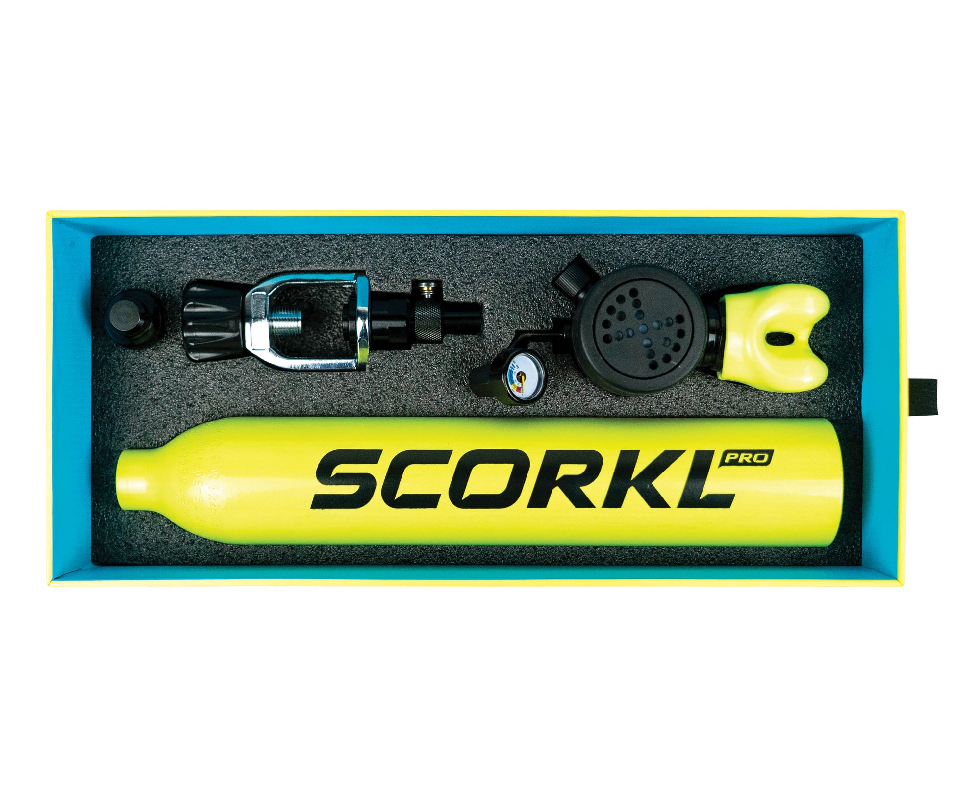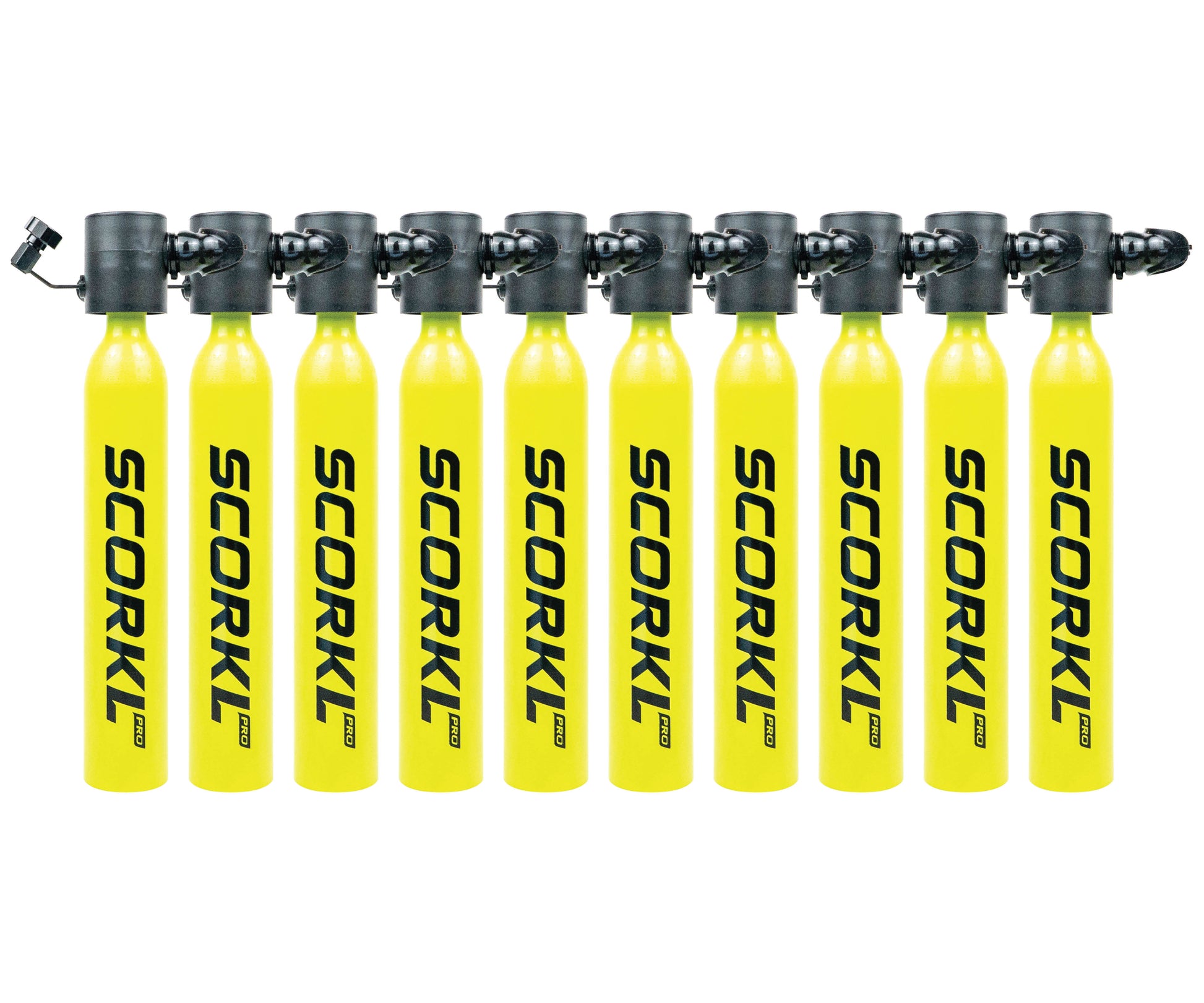 • Includes 10x SCORKL Pro cylinders with regulators, SCUBA tank refill adapter, compressor refill adapter, protective dust caps, safety instructions and user guide